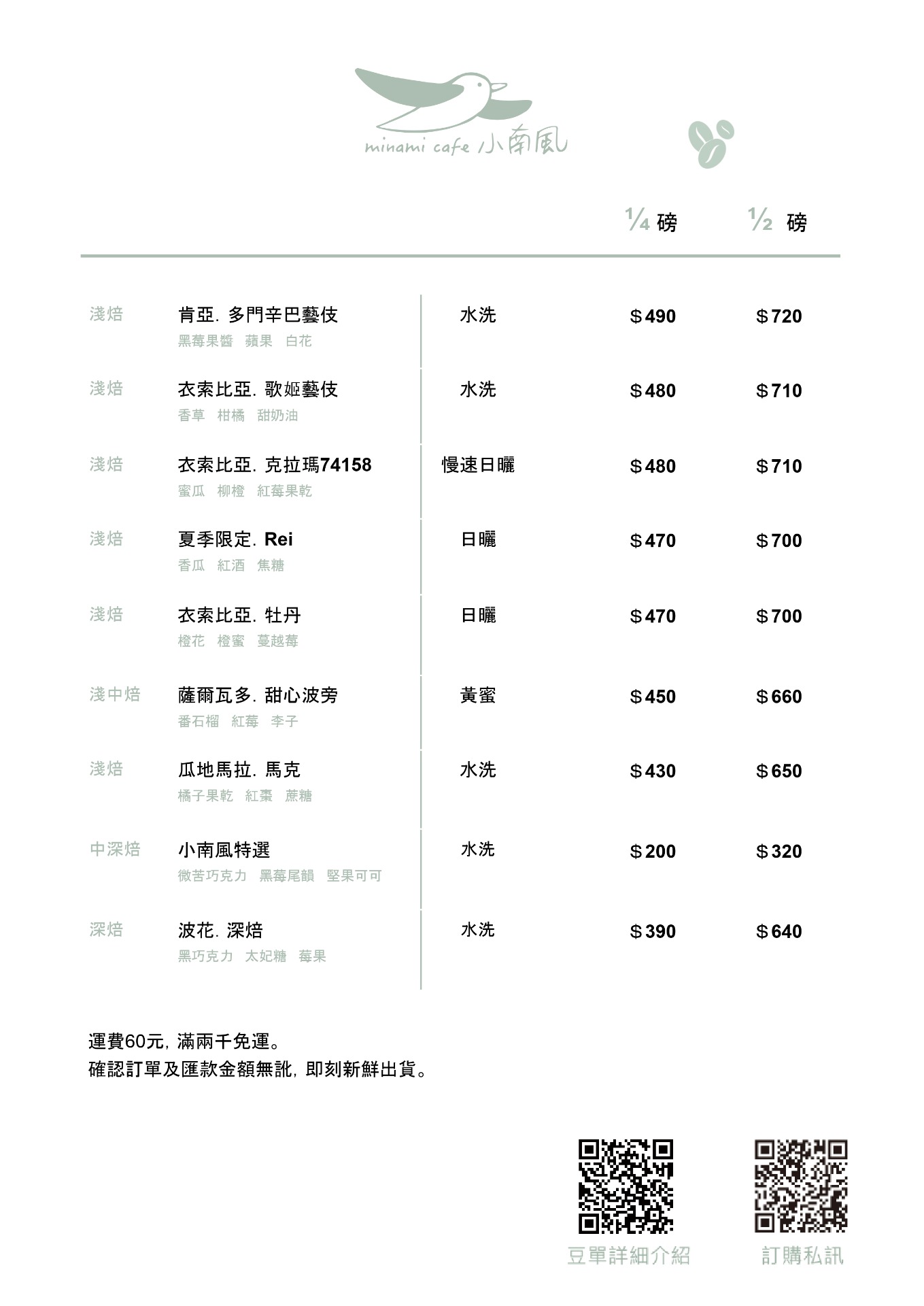 ◆ 小南風特選 水洗 / 微苦巧克力、黑莓尾韻、堅果可可